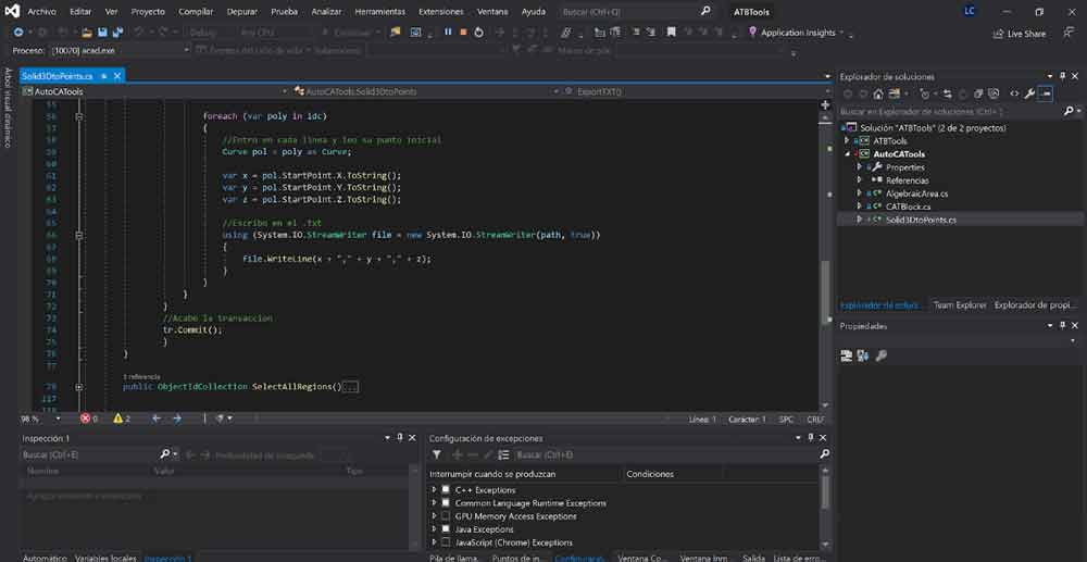 Mas em outras ocasiões, a grande quantidade de geometria com a qual trabalhamos em projetos de engenharia civil faz com que o Dynamo não seja a solução ideal e mais rápida. Neste caso, devemos atuar a partir do coração do programa, a partir de sua API, aumentando consideravelmente o desempenho do computador e tornando o fluxo de trabalho mais estável (podendo o usuário não se preocupar com o tamanho do arquivo com o qual está trabalhando, as diferentes versões dos programas, a estabilidade dos pacotes ou versões dos mesmos, etc.)