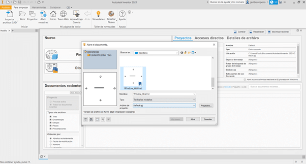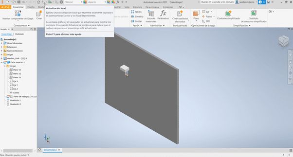 - Changes in the model: we modify the type of the window and its position in the model. In order to see the changes reflected in Inventor, the link must be updated and our model will be updated as in the following image.