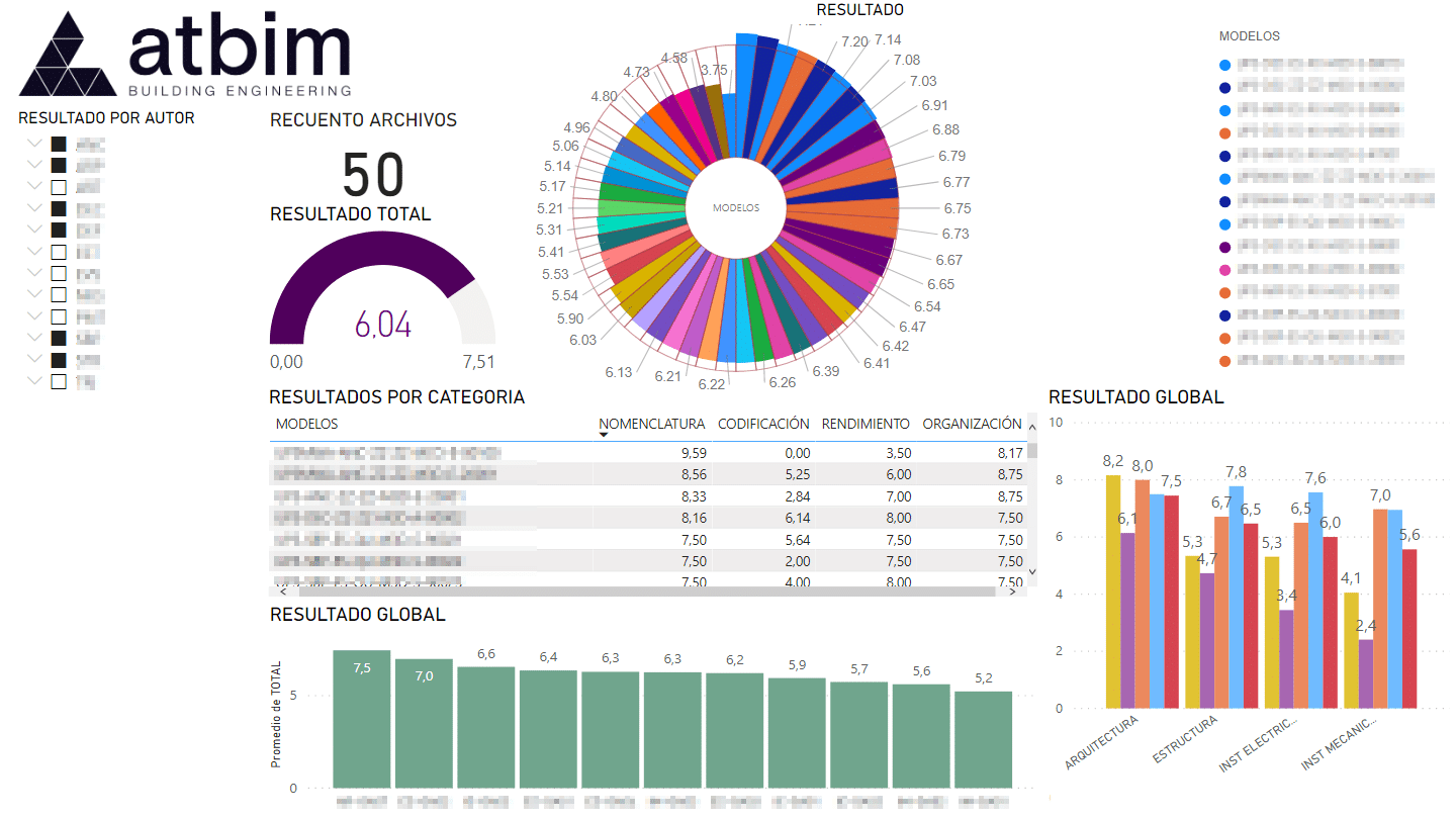 La realización de auditorías permite al gestor de la información la obtención de una visión global del estado y la viabilidad actual del modelo. Para ello, debe apoyarse en herramientas de visualización que permitan para el análisis y el control de la información. A continuación, se muestran varias de estas herramientas desarrolladas como cuadros de mando por ATBIM, en función del tipo de auditoria:
