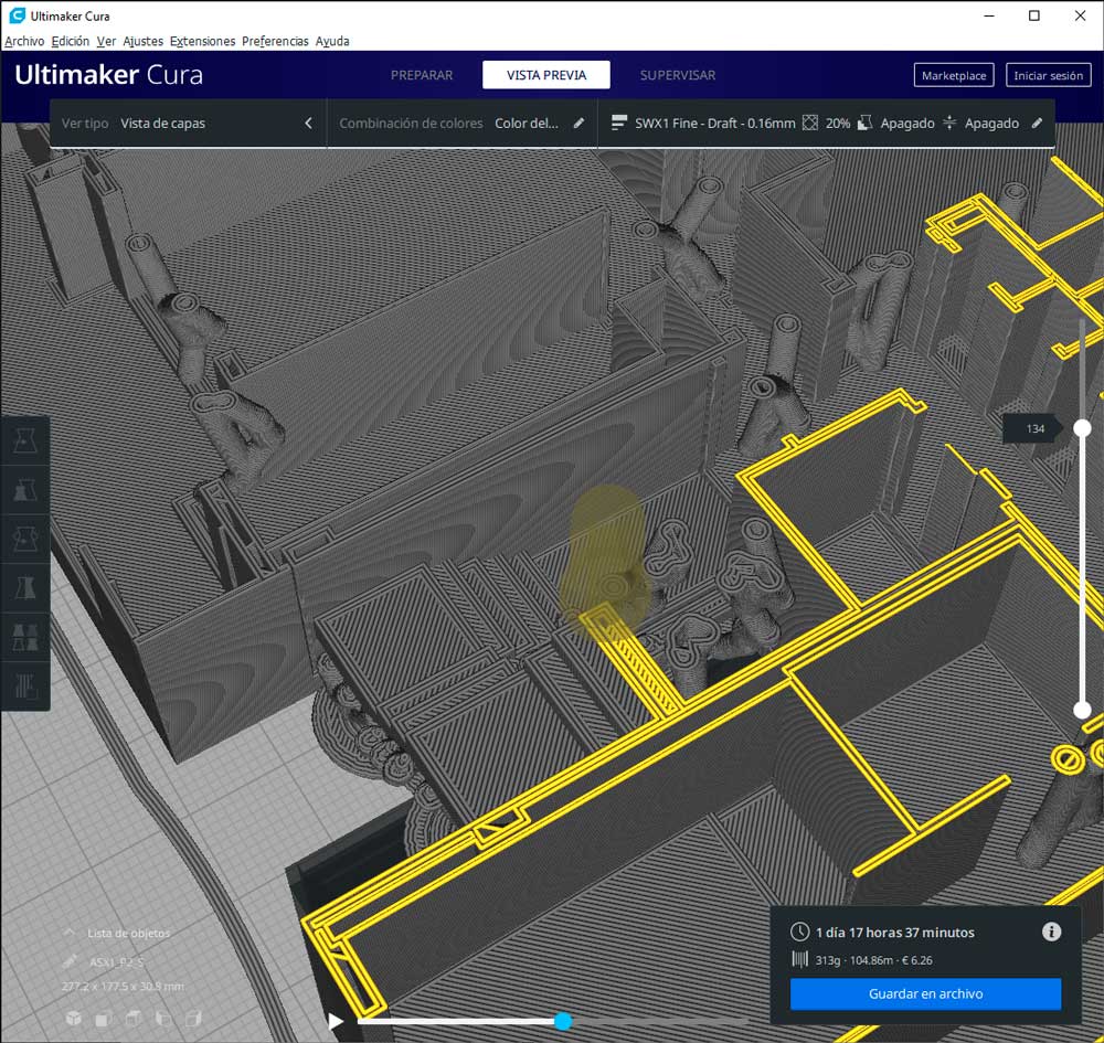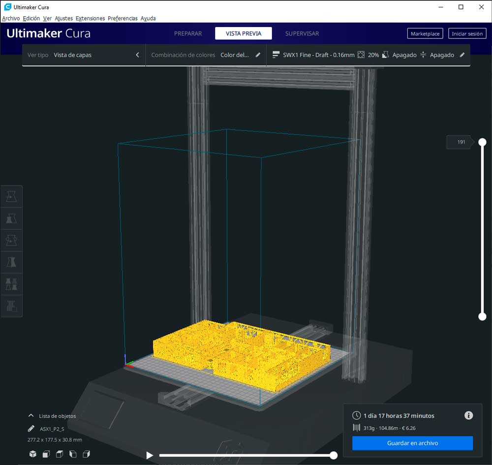 Este archivo ya es apto para su lectura en cualquier impresora, con lo que podremos cargarlo y pulsar "imprimir". Ya solo nos quedará limpiar los soportes y disfrutar de nuestra maqueta impresa en 3D.